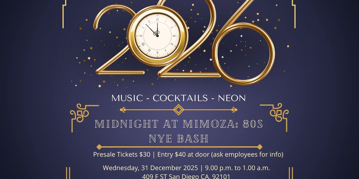 Get ready to transport back to the 80s for a wild New Year's Eve bash at Midnight at Mimoza - it's gonna be totally rad!